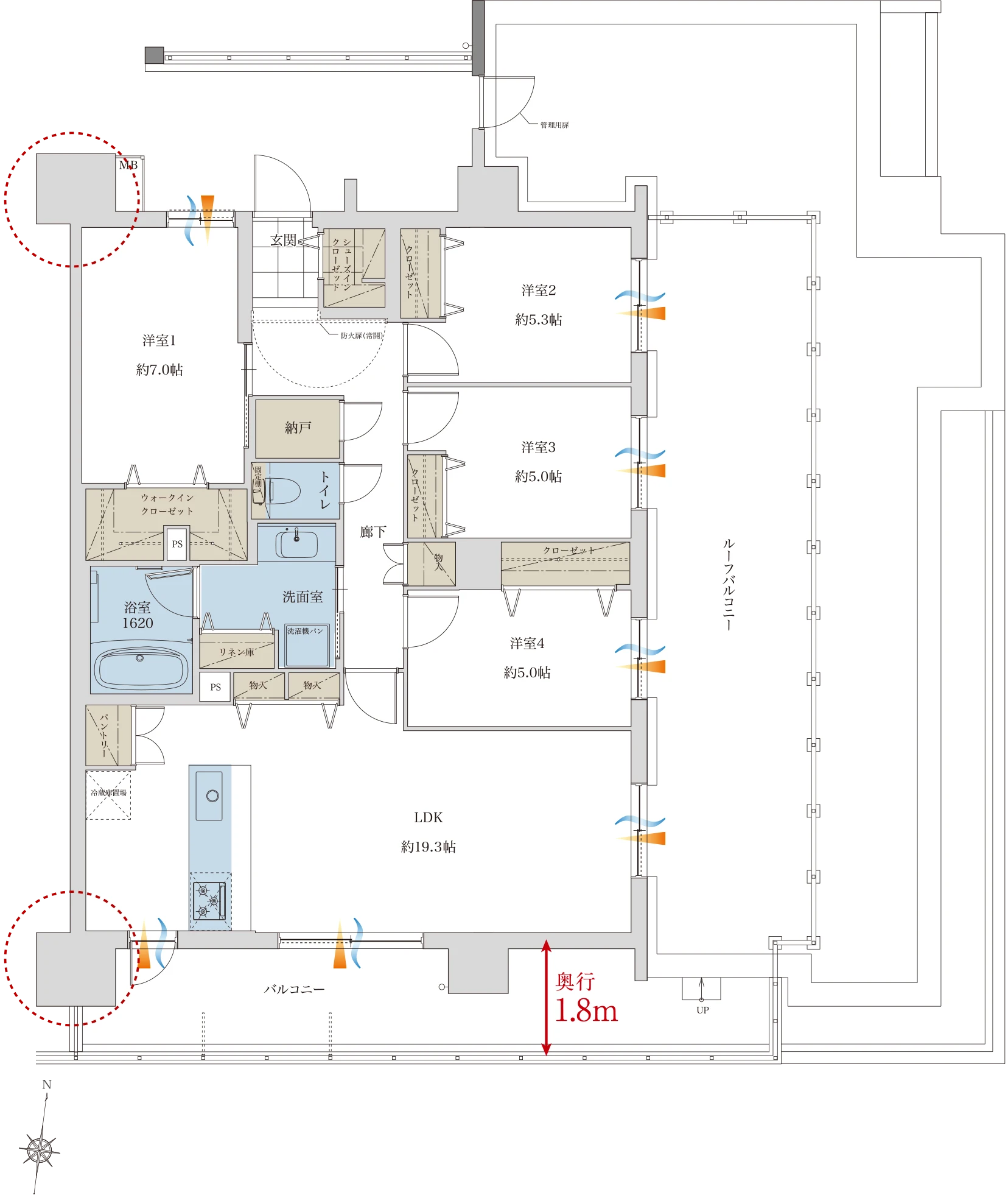バルコニー面積/18.76㎡(5.67坪)
